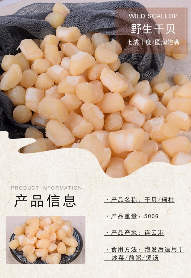 天猫巧嘴客旗舰店35.8元,可领2元优惠券,实付33.8元到手;瑶柱(Scallops)俗称干贝,是扇贝的干制品。其因味道鲜美被列作“海八珍”之一,素有"海鲜极品"的美誉。而今虽超市里随处都能买到,但大的干贝依然昂贵,尤以粒形肚胀圆满,色泽浅黄,手感干燥且有香气,口感嫩糯鲜香回甘之类为佳。