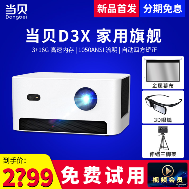 当贝D3X是一款搭载了多项领先科技的智能投影机,这款投影机采用了0.33英寸DMD芯片,可实现1080p物理分辨率。配合欧司朗全新的LED光源,让亮度达到了1050ANSI流明,可有效减少白天使用投影时环境光对投影效果的影像,不拉窗帘,白天也能享受绚丽的画面。