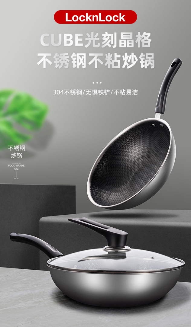 这款乐扣乐扣 家用不锈钢蜂窝炒锅 ,采用304食品级不锈钢材料,多层复合,耐腐蚀、耐热、耐刮擦,微凸蜂窝晶纹,利用蜂窝蒸汽悬浮技术,达到物理不粘锅的效果,无涂层,耐刮擦,不沾易清洗,加深锅底,使用方便,可视玻璃盖,电木手柄隔热防烫,燃气灶电磁炉通用。
