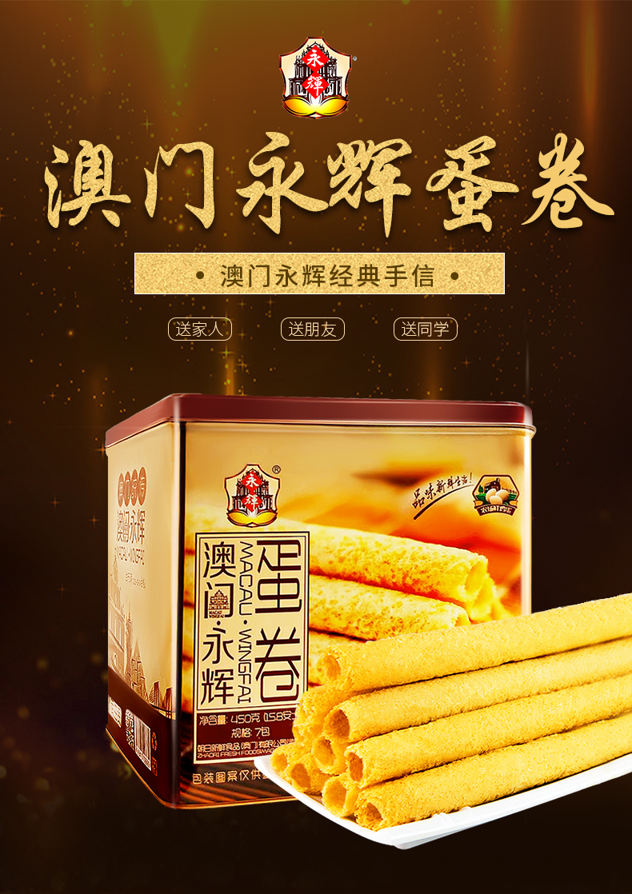 澳门永辉始创于80年代,是来自澳门手信老字号的代表,是传统特色产品的产销一体化企业,80年代初首创椰汁蛋卷皇、紫菜肉松凤凰卷、粒粒杏仁饼并延续至今。澳门永辉初创时,专供澳门各大手信饼家及超市,是澳门首家蛋卷、西饼OEM供应商,专业生产澳门特产。
