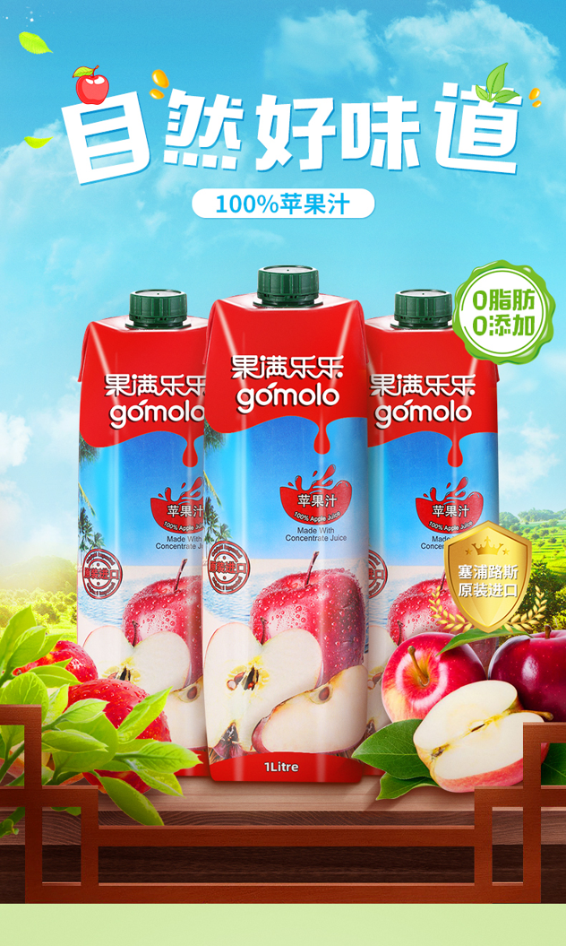 这款Gomolo 果满乐乐 100%纯苹果汁,规格: 1L*4瓶 ,源自地中海岛国塞浦路斯,无任何添加剂,采用100%纯果汁,果香浓郁,给你鲜榨果汁的口感,含丰富维生素A、C、E,是爱美女士的最佳饮品。
