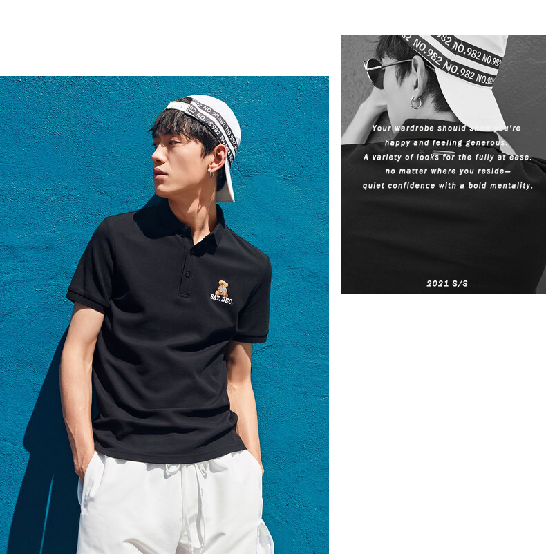 2色可选,S~XXXL码全。这款太平鸟男士小熊刺绣时尚短袖POLO衫,全棉材质,舒适透气,柔软顺滑;翻领设计,不易变形;精致小熊刺绣,彰显品质。