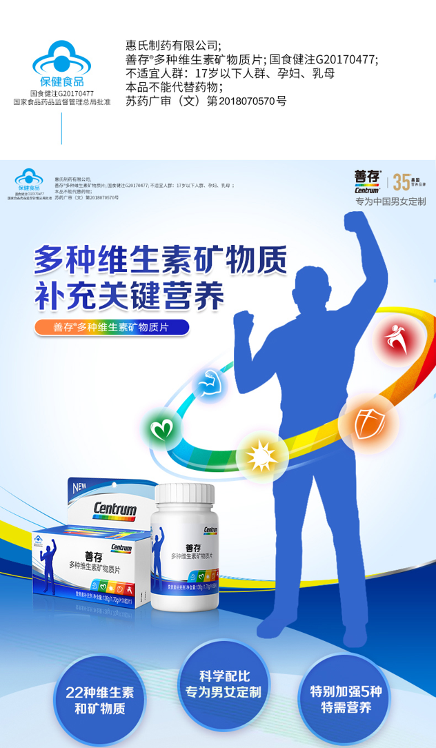 =96.4元 到手价,这款善存银片,专为中老年男士设计,复合22种维生素矿物质,科学配比,可补充日常所需营养,提高免疫力规格:160粒/瓶,每日1次每次2粒随餐服用。