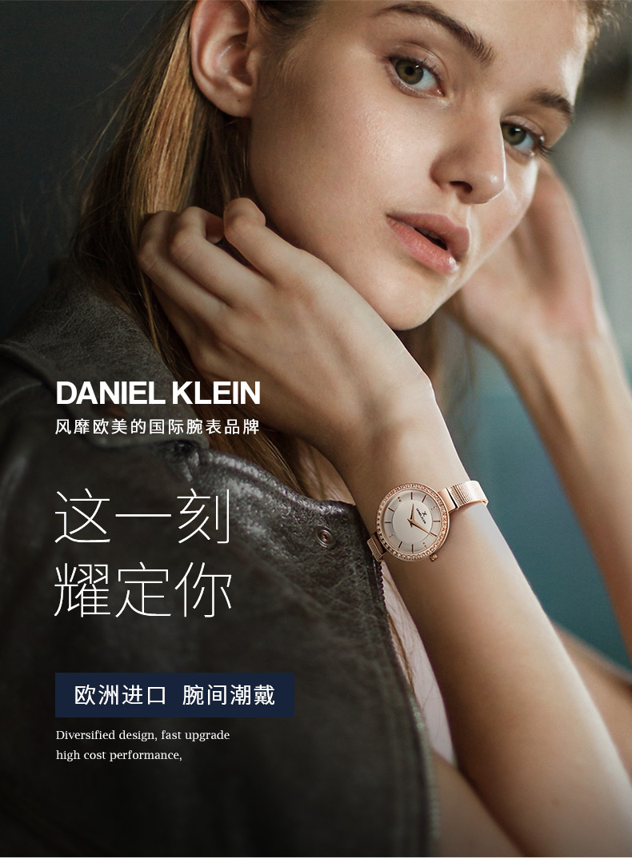 DanielKlein 是一个正在窜红欧美各大时尚圈的欧洲潮流腕表品牌,倡导“将世界潮流戴上手”的风格,每季都有百余种全新风格,时尚百搭。凭借多样的设计和快速上新,让DanielKlein成为蹿红欧美的国际腕表品牌。线下店铺现已遍布全球65个国家,迅速席卷全球。