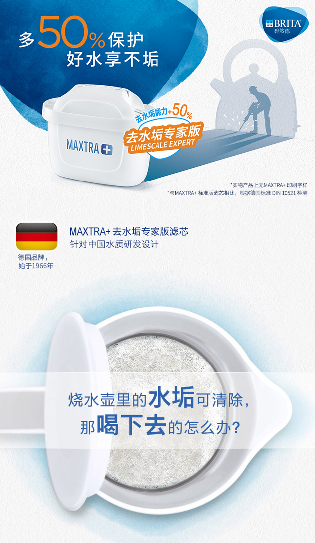 滤芯方面,德国原装进口的Maxtra+,比传统的一代滤芯在过滤能力方面增加了20%,还改良了MicroFlow Technology 微流控技术,使水的味道比以往更好。滤芯中所含的活性炭,能有效过滤水中的重金属、水碱、杀虫剂、有机杂质、氯气和异味。