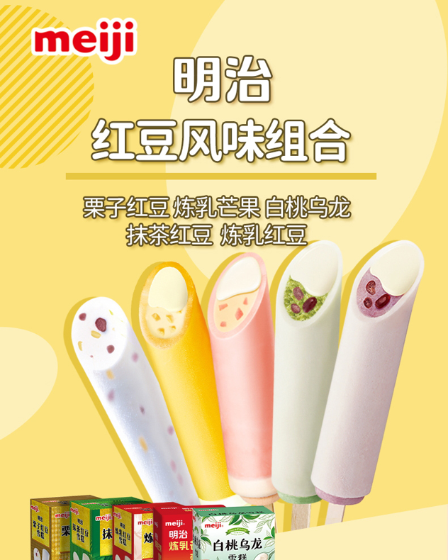 日本明治雪糕源自明治集团「官网」,已具有80多年历史,始终坚持选用新西兰天然牧场的纯正奶源,以新鲜果肉、高级坚果等作为原料,更最大程度地减少香精、色素及添加剂,务求每一件雪糕出品美味天然。1996年至1999年在日本已连续四年销量第一,风靡日本和东南亚地区。
