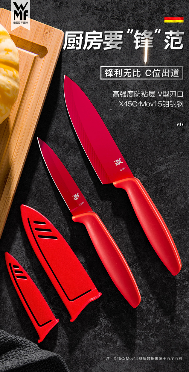天猫wmf轩赟专卖店,第一款/2件套 69元,可领30元优惠券,实付39元到手。X45CrMov15不锈钢 持久锋利易清洁。