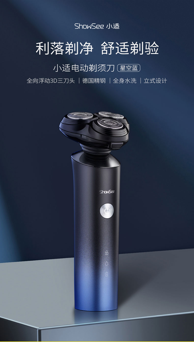 定制大扭力马达2900rpm/min高转数,自主研发减震降噪刀头结构,智能动力恒定系统,持久输出稳定动力,独立浮动3刀头设计,弹性贴面全向剃须,135齿双环刀网,灵活浮动,深入死角,不留胡茬;IPX7级水洗,干湿双剃,800MAH锂电池,1个半小时充满电,支持90分钟续航。