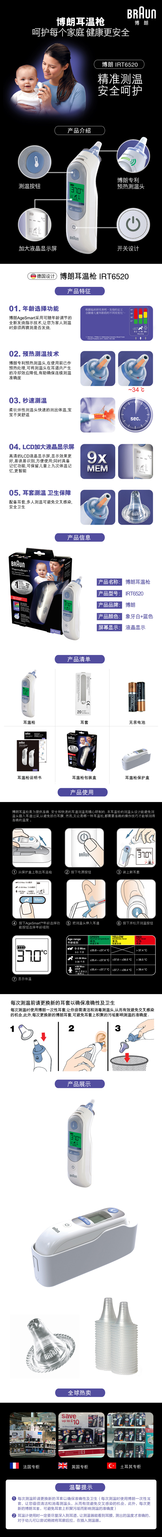 传统体温计需要5分钟测量时间,对于好动的宝宝来说用起来非常不方便,不过,耳温枪的出现解决了这一问题。BRAUN 博朗 IRT6520 是14年上市的旗舰机型,也是目前博朗最高端的型号。