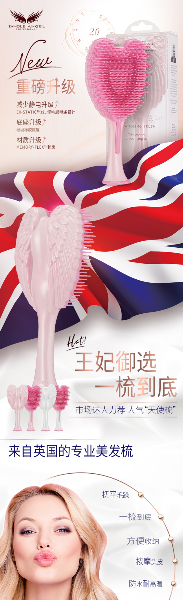 Tangle现有美发梳和宠物梳,不同款式和大小,型号很多,但人气最高的,依然是「Tangle Angel天使美发梳」、「Tangle Teezer便携美发梳」这两款。