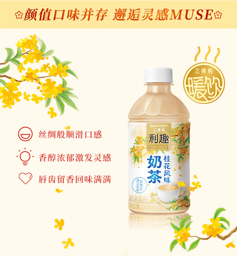 天猫三得利食品旗舰店150元,可领85元优惠券,实付65元到手,规格为350ml*24瓶。三得利今年的春季新品,优选新西兰乳粉,搭配清香桂花和文火烘焙的绿茶,入口奶香浓郁,随后是桂花的甜香以及茶香,口味清新,入口丝绸般顺滑。