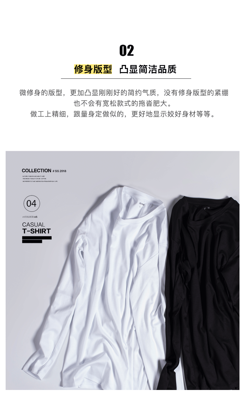 高克重面料好处多多,不但保暖好,吸水快,还拥有更好的下垂感和质感,不易皱,不易变形,耐洗不易缩水。微修身版型,不紧绷但也不拖沓,是一件高性价比打底衫。