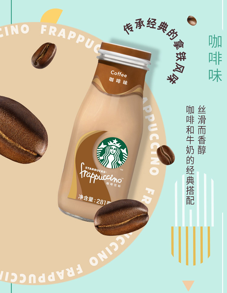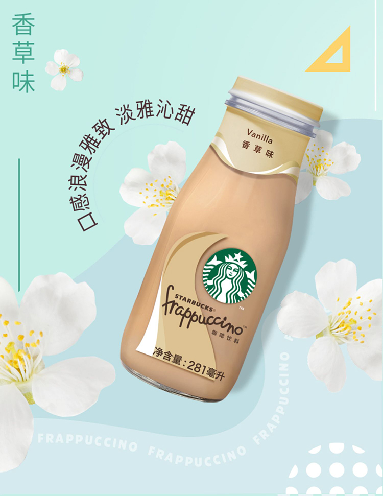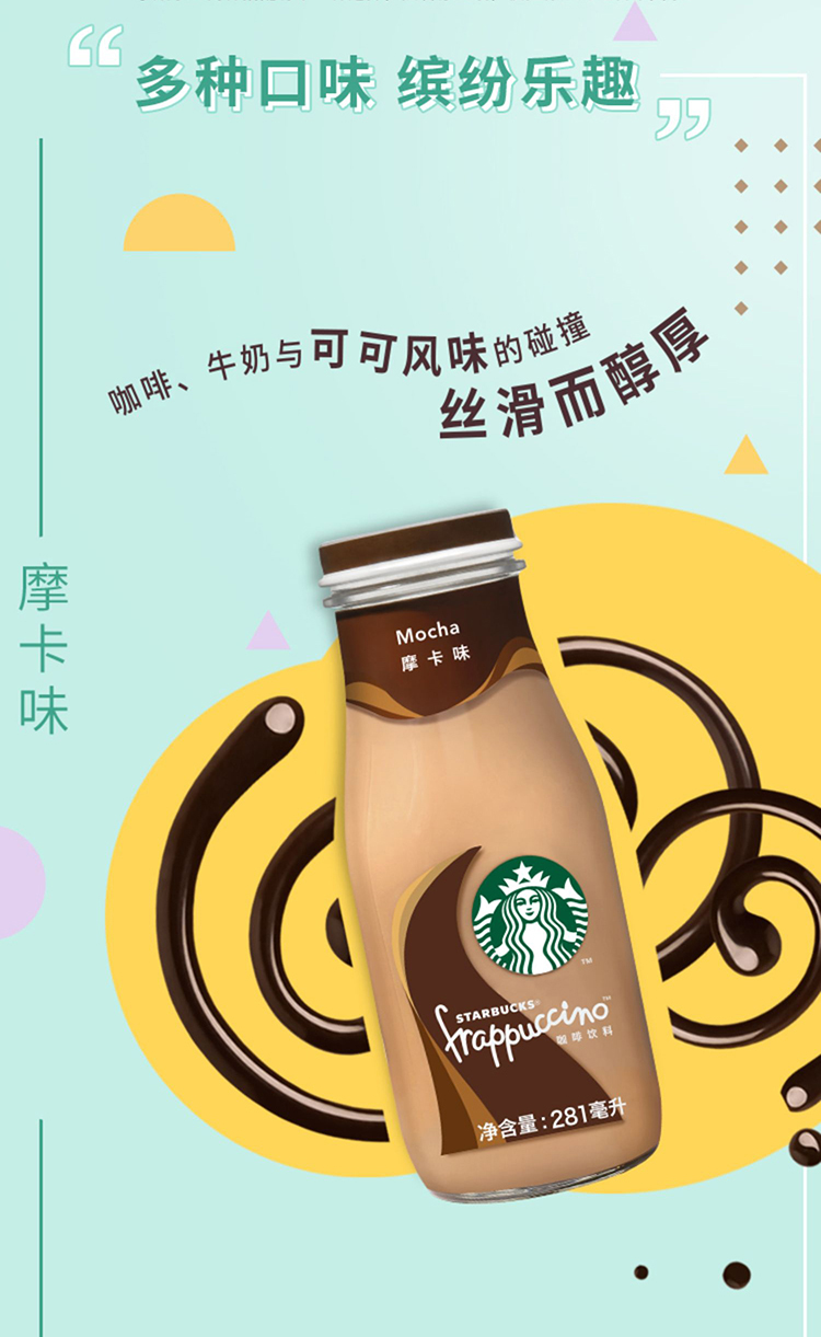 这款星巴克 星冰乐咖啡,由意大利浓缩咖啡、低脂牛奶、砂糖、干果胶粉、可可粉、冰块混合而成,口感滑顺绵密,自1995年上市后成为星巴克的招牌饮料。