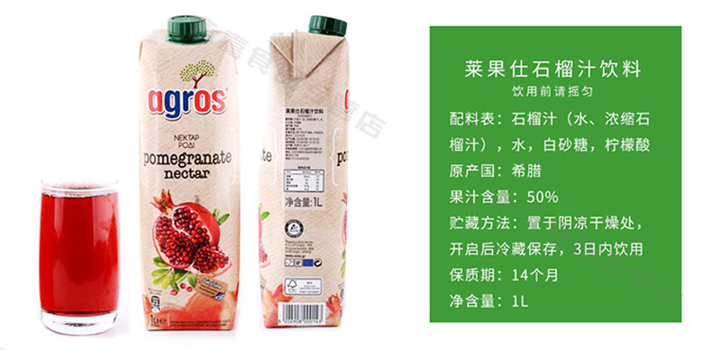 agros莱果仕工厂位于希腊的海港城市纳芙普利翁。一直秉承着其有的口感和对健康的理念,工厂的所有加工产品希腊的自有果园,选用当季新鲜水果,经过人工采摘筛选,新鲜榨取,有蔓越莓、菠萝、血橙、香蕉、桃、石榴、酸櫻桃、苹果、橙味共9种口味,可下单备注选购。