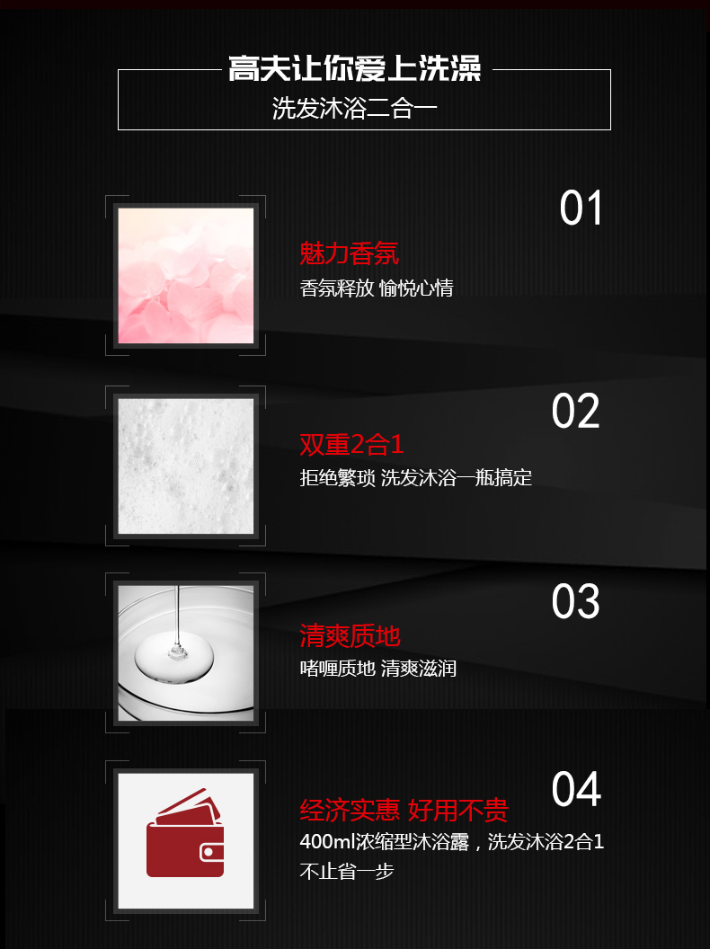 我非常爱用高夫的东西,主要是非常喜欢他的香味,用后感觉整个人都精致起来了。这款高夫的沐浴露使用方便,清爽的啫喱质地,滋润又舒适,还有专为男性设计的魅力香氛配方,充分释放香味,愉悦心情。