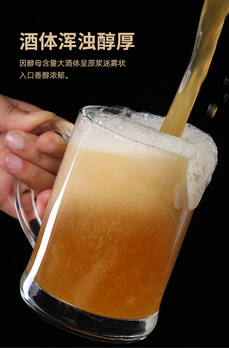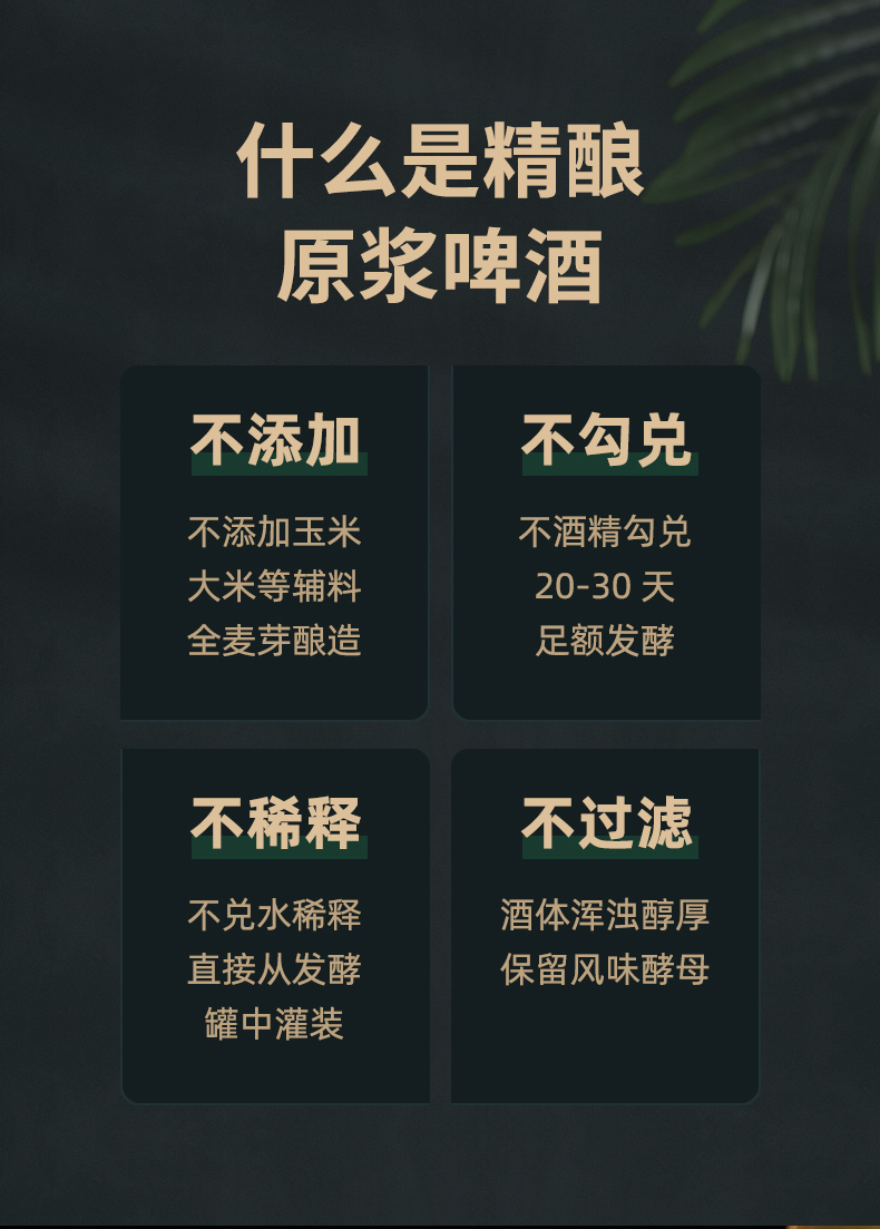原浆啤酒是指那些未经过滤处理保留了发酵过程中的活性酵母,在啤酒酿造过程中不经过过滤,不经过高温巴氏杀菌,是直接从发酵罐中分装,保持了啤酒最原始、最新鲜的口感。