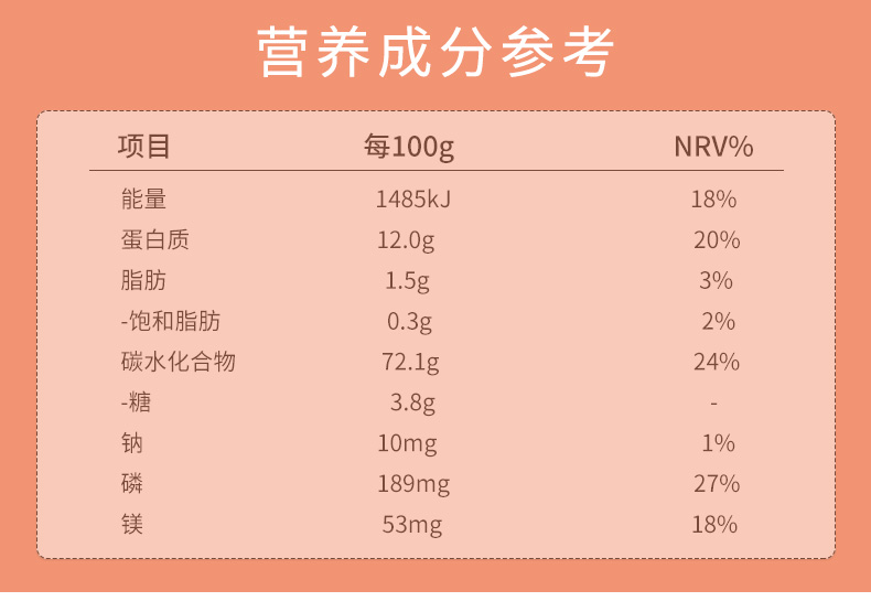 其中每100g含蛋白质12g、脂肪1.5g、不仅可以满足人们所需营养,还可以增加长时间的饱腹感;采用低温烘干健康无添加,适合所有人群食用。