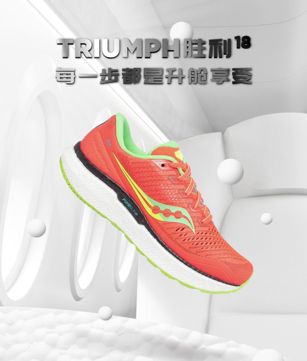 Triumph(国内翻译成胜利)是索康尼的顶级缓震跑鞋,已经出到18代,之前有段时间曾经以Triumph +ISO +数字代替TRIUMPH+数字的命名方式,主要是为了体现鞋面使用ISOFIT贴合系统。Triumph18的并没有使用ISOFIT鞋面动态贴合系统,所以回归Triumph+数字的命名方式。Triumph18目前官网上定价150美金。