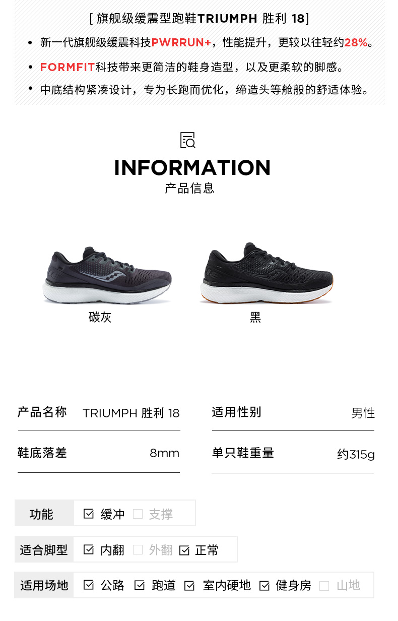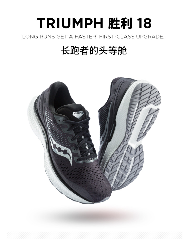 Triumph跑鞋号称长跑者的头等舱,是专门为长跑打造的顶级缓震跑鞋,中底使用最新的PWRRUN+材质,提供超强缓震,跨出的每一步都是头等舱的舒适体验。