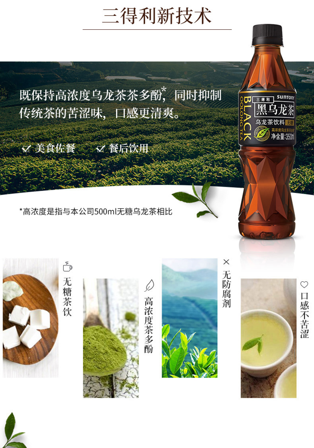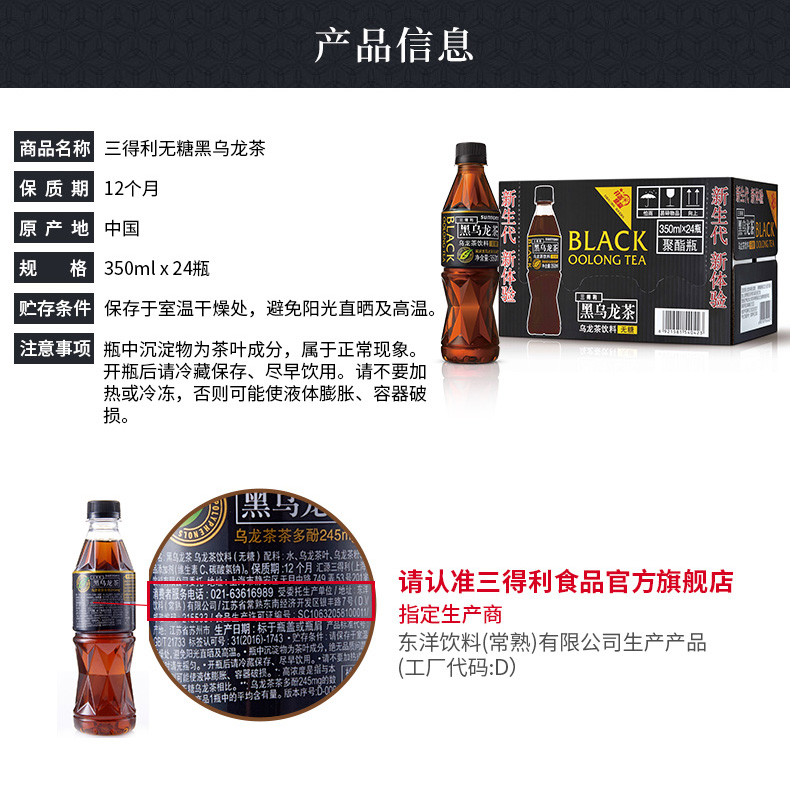 这款乌龙茶,精选一级茶叶,参照日本食品卫生法要求,近460项监控(中国48项),无色素、无防腐剂、无香精,从原料到成品全程溯源,品质可靠,本款是无糖款,既保持高浓度乌龙茶茶多酚,同时也抑制了传统茶的苦涩味,使口感更加清爽。美食佐餐,餐后饮用,都是上佳之选。规格:350ml*24瓶。