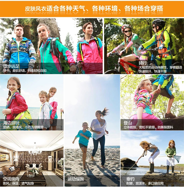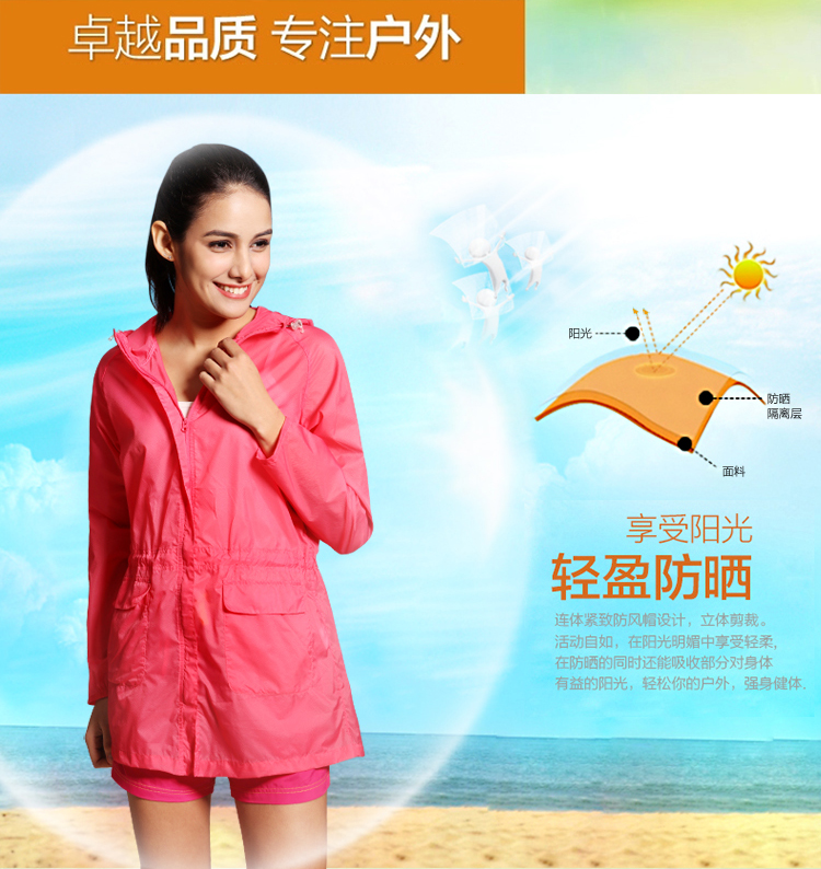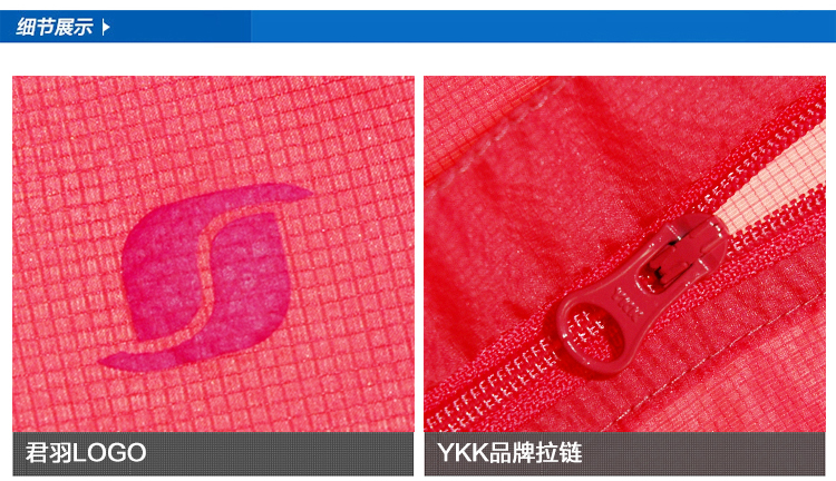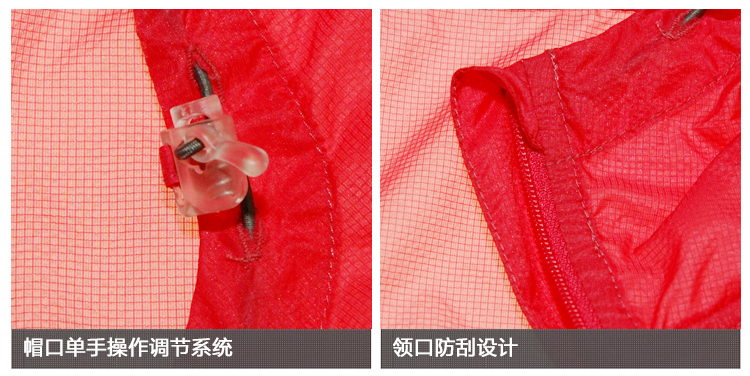 在面料上是100%的抗撕裂尼龙,强度好还能99%防风,同时衣面表面还有拒水涂层,不沾雨水,可轻度防水;轻薄透气的同时,还有不错的防晒能力;