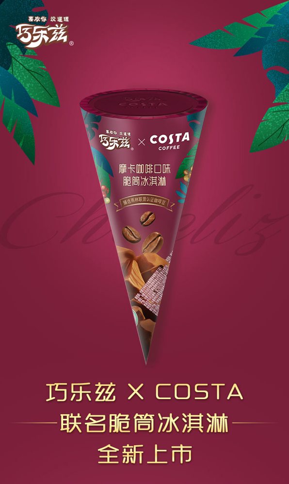 巧乐兹脆筒冰淇淋,单件包含Costa咖啡、香草、海盐和姜撞奶口味各6支,臻选雨林联盟认证的咖啡豆,顶部搭配浓郁巧克力脆皮和香浓牛奶脆饼,棕色脆筒包裹摩卡咖啡口味冰淇淋,口感香浓,有料更满足。