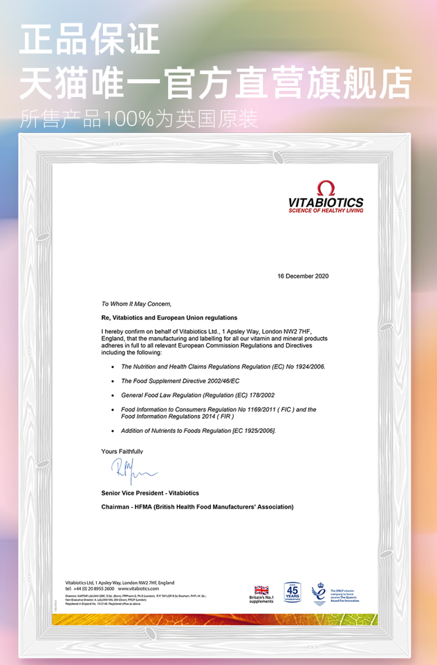 维百莱Vitabiotics是英国保健品品牌,是全英第二大的营养品供应商,成立于1971年,是一家自主研发、生产、销售于一体的营养保健公司。
