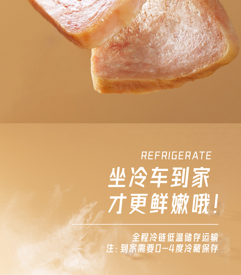 =44.95元 到手价(定金10+尾款49.9),全程冷链运输(注:到家0-4℃冷藏保存),保质期150天。 有猪肉原味、鸡肉味、黑胡椒可选。4.9超高评价的爆款午餐肉。