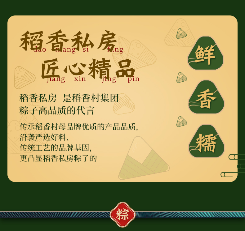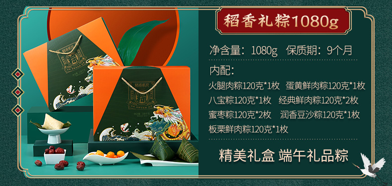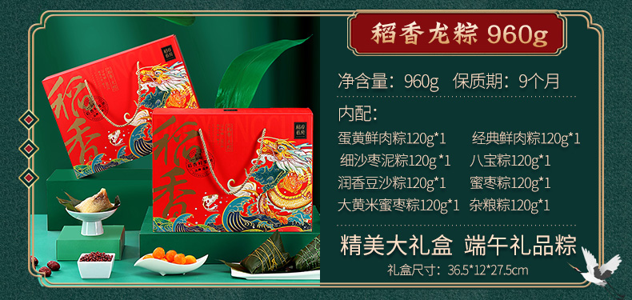 天猫稻香村食品旗舰店49.9元,下单立减25元,可领5元优惠券,实付19.9元到手,8粽8味 新鲜日期。包含:蛋黄鲜肉粽120g*1、经典鲜肉粽120g*1、细沙枣泥粽120g*1 、八宝粽120g*1、润香豆沙粽120g*1、蜜枣粽120g*1、大黄米蜜枣粽120g*1、杂粮粽120g*1。