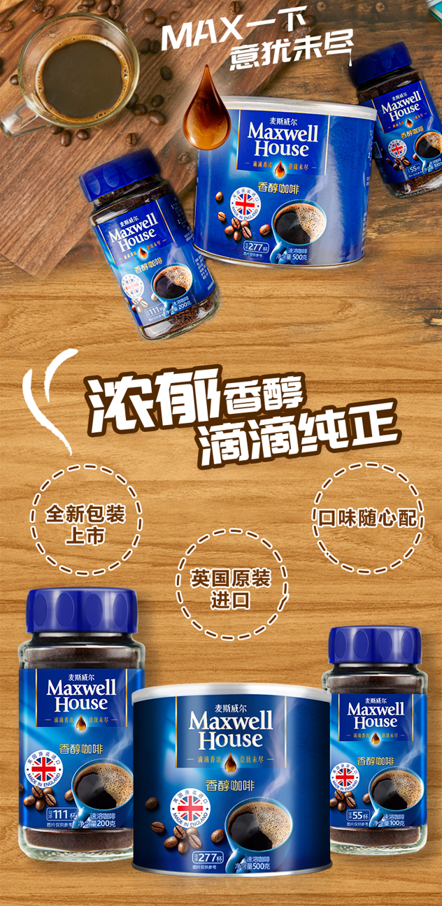 天猫麦斯威尔旗舰店,¥169元 61预售价,-30元 付定金立减,-10元优惠券,=129元 到手价(定金20+尾款109),6月1日00:30后开始付尾款,