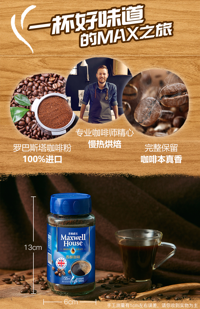 英国原装进口,精选罗巴斯塔咖啡粉,专业的咖啡师精心慢热烘焙,完整的保留咖啡本真香,浓郁香醇,滴滴纯正,一罐500g约可冲泡277杯。