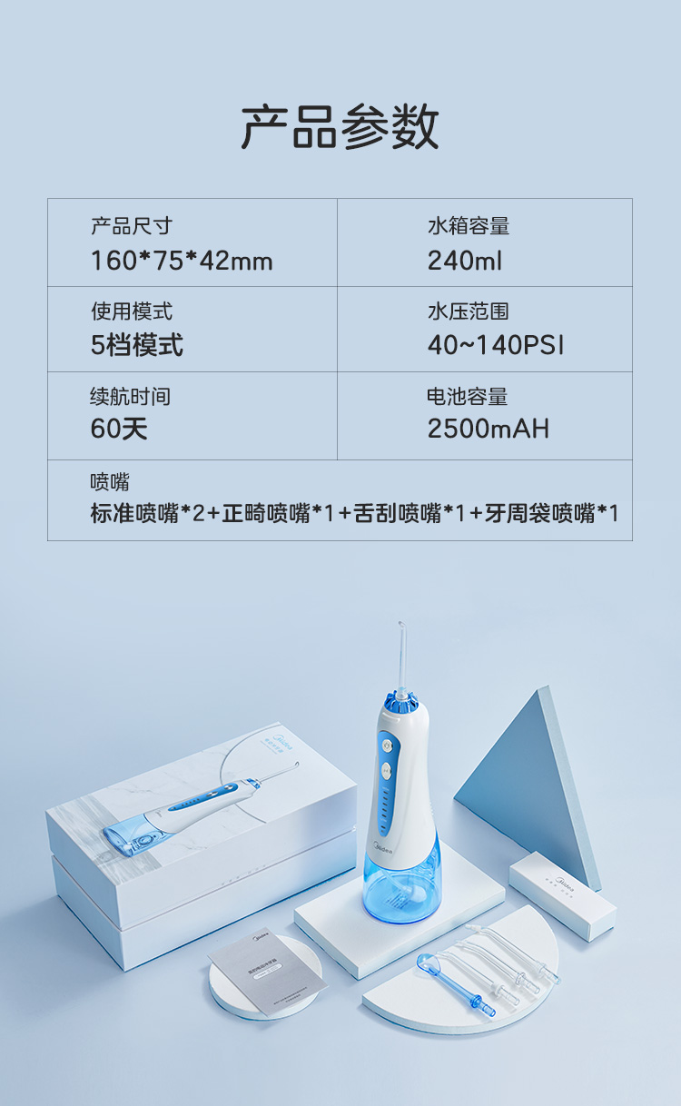 天猫美的口腔护理旗舰店269元,可领70元优惠券,实付199元到手,包顺丰,晒单送喷头*2+39.9元漱口水*1,1年内只换不修的保障。