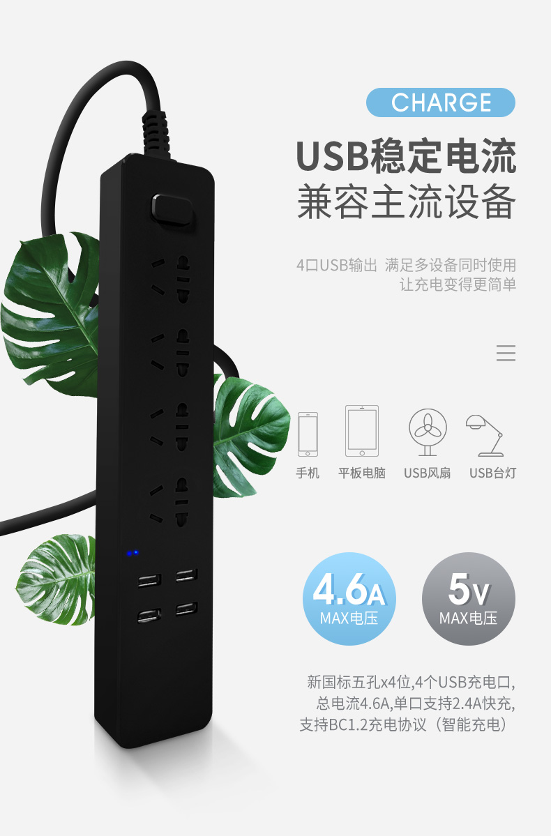 这款TOPBATT 电子电工 新国标多功能USB排插,安全性能提升,整体阻燃PP材质,做工精细,耐高温、防发烫、耐插拔、寿命长,替换家中老旧排查,新国标带安全门设计,防止小孩伸手或金属插入。