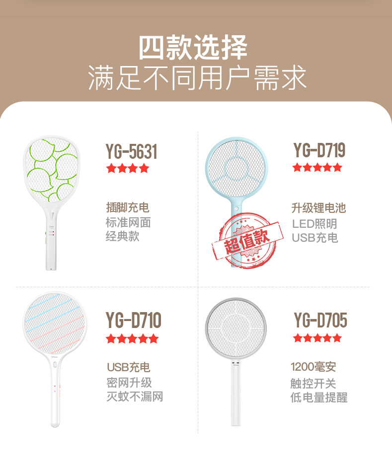 天猫雅格萧博专卖店24.9元,可领10元优惠券,实付14.9元到手,前2款此价。大牌雅格电蚊拍,国家标准,带LED灯,加大网面,电蚊不电人,有效灭蚊,坚固耐用,质量保证,30天无理由退货,365天以换代修,赠运费险。