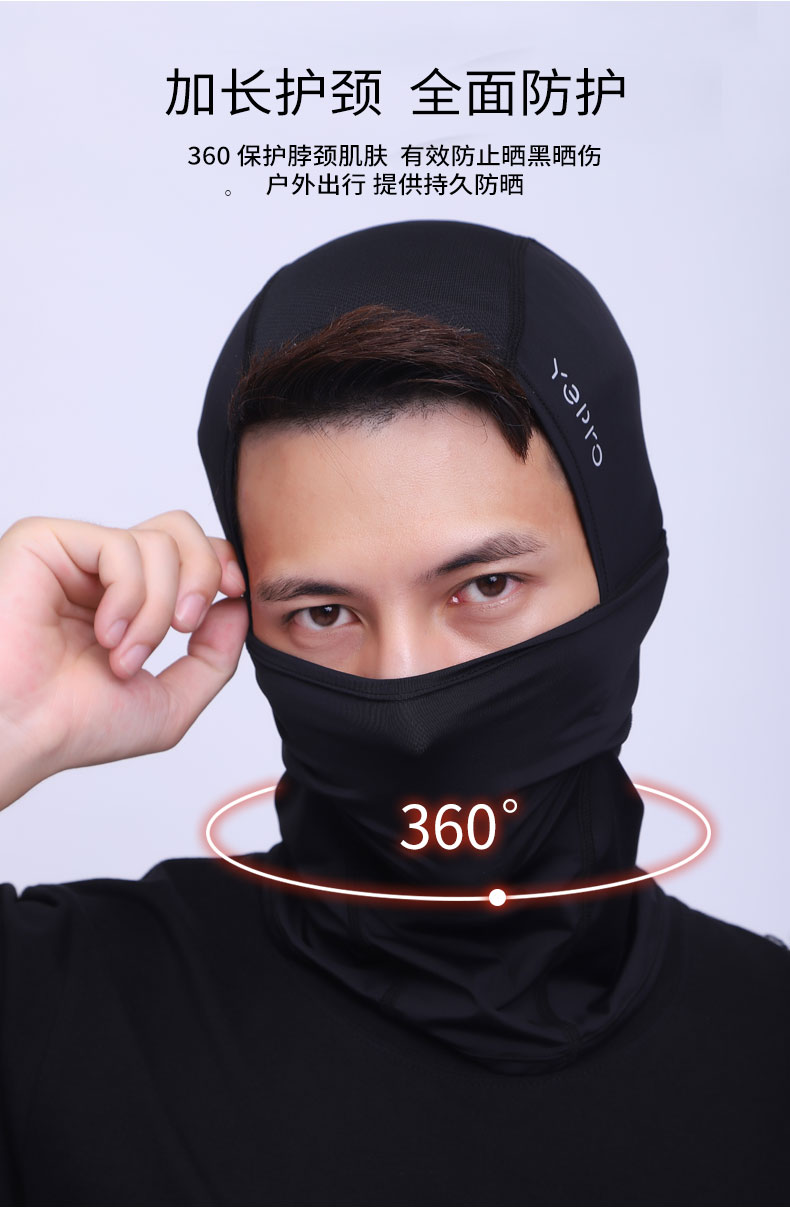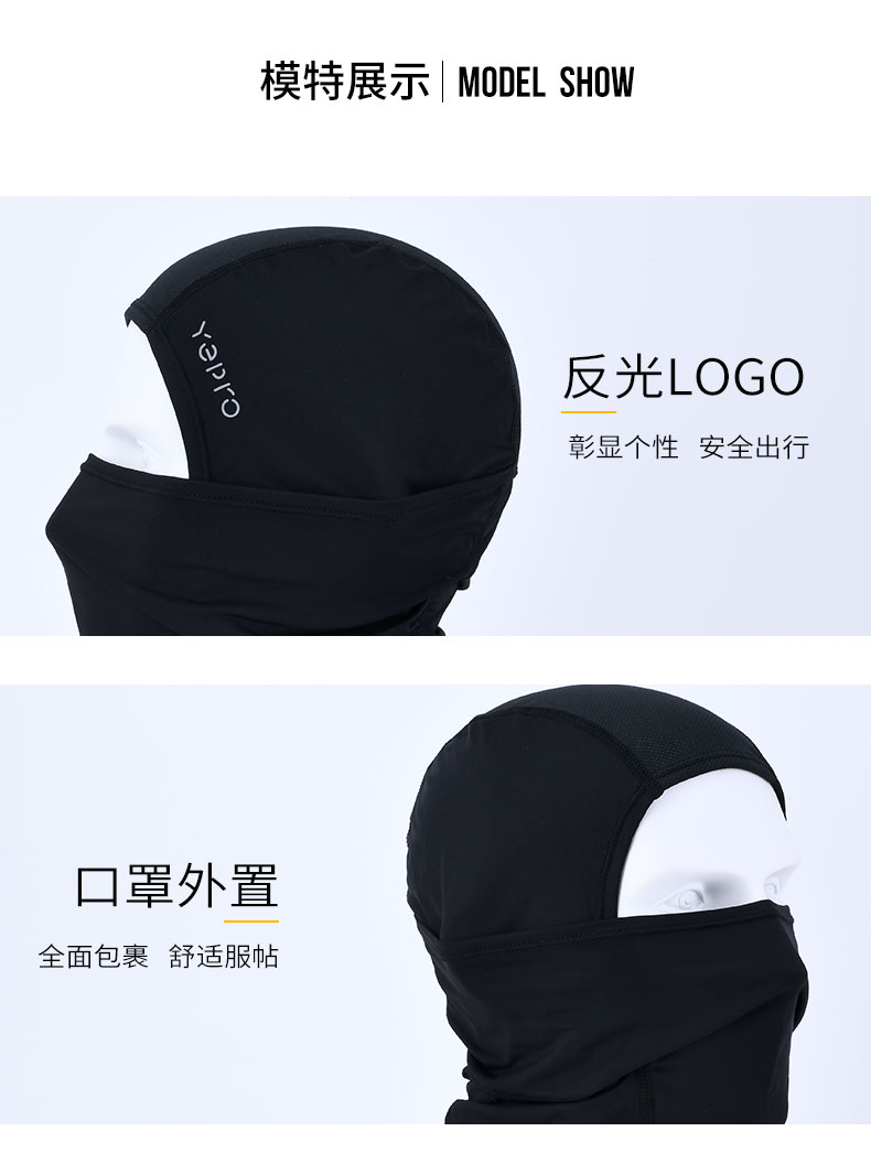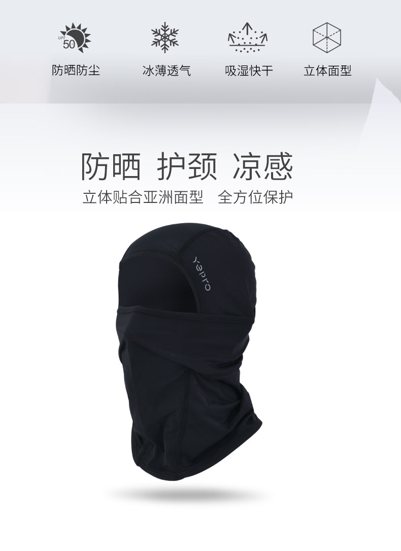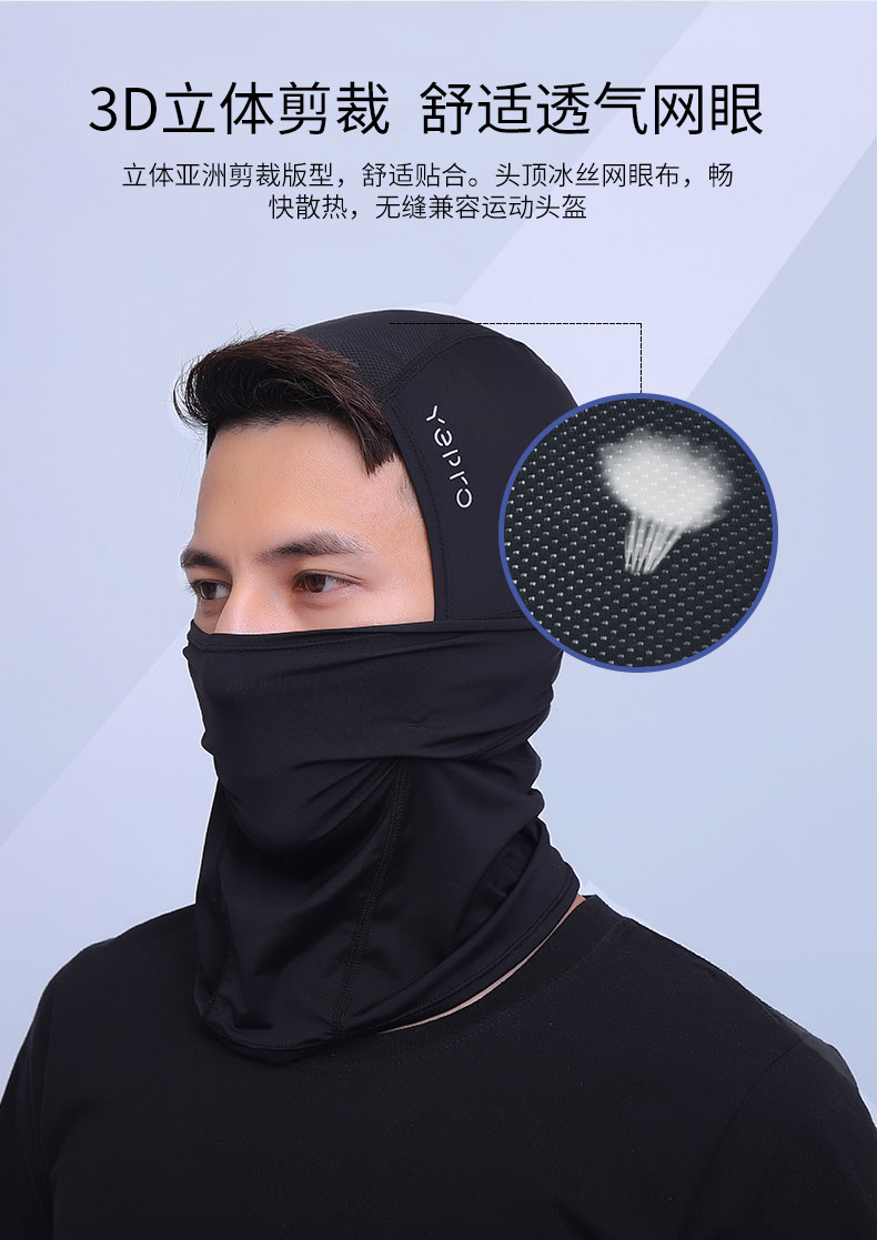 在细节上:头顶部分是冰丝网眼布,散热更迅速,还能无缝兼容运动头盔;加长护颈,360°全方位的保护脖颈肌肤。四针六线,无接缝凸起摩擦皮肤引起不适。