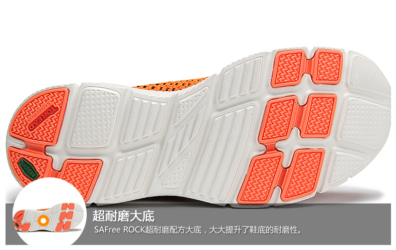 中底是ToLite超轻中底科技,让鞋身更加轻质,减轻出行负担。外底是SAFree ROCK岩石仿生超耐磨大底,防滑耐磨、抓地牢靠,即使是湿滑路面也能稳步前行。