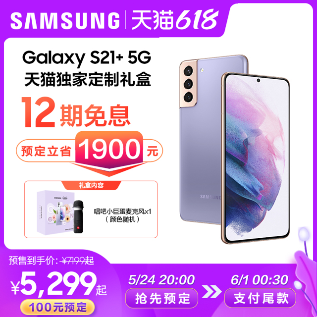 天猫三星官方旗舰店该商品正在预售,需定金100元,1日0点30付尾款,预计到手实付5299元包邮。S21系列中配机型,6.7英寸直屏,45Hz至120Hz自适应调节刷新率。近期好价,需要的买买不要错过~