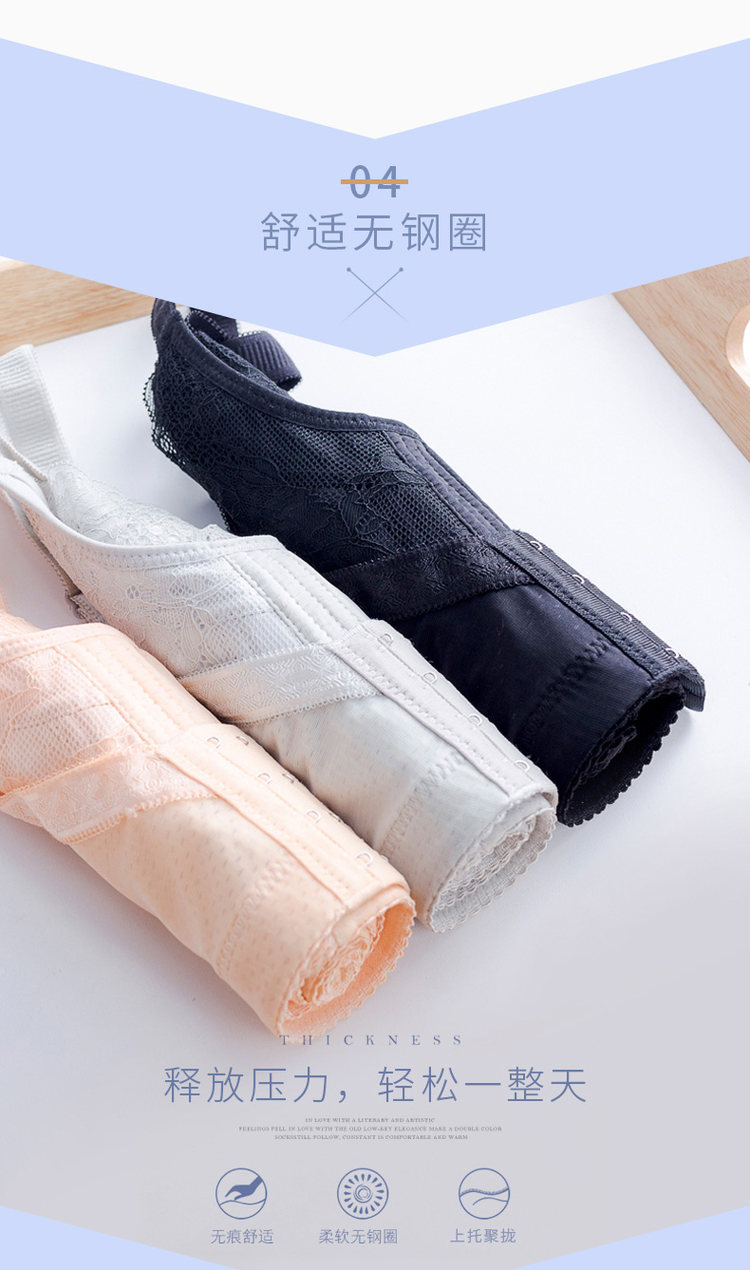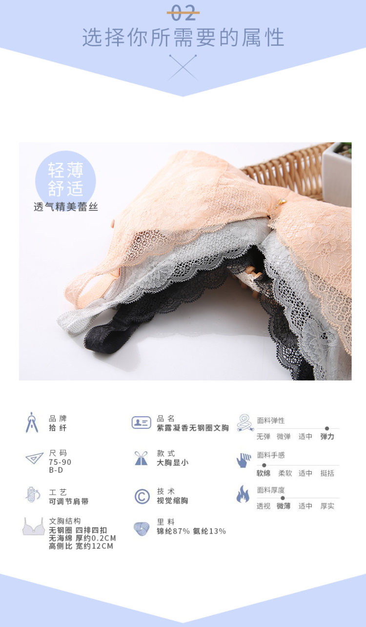 女孩子每天都要穿的内衣,肯定要穿舒服的哇,拾纤旗舰店出品。无痕无钢圈内衣,透气柔软面料,穿着舒服,还是无钢圈收副乳的款,感受ta的0束缚,睡觉,瑜伽,运动都好穿。