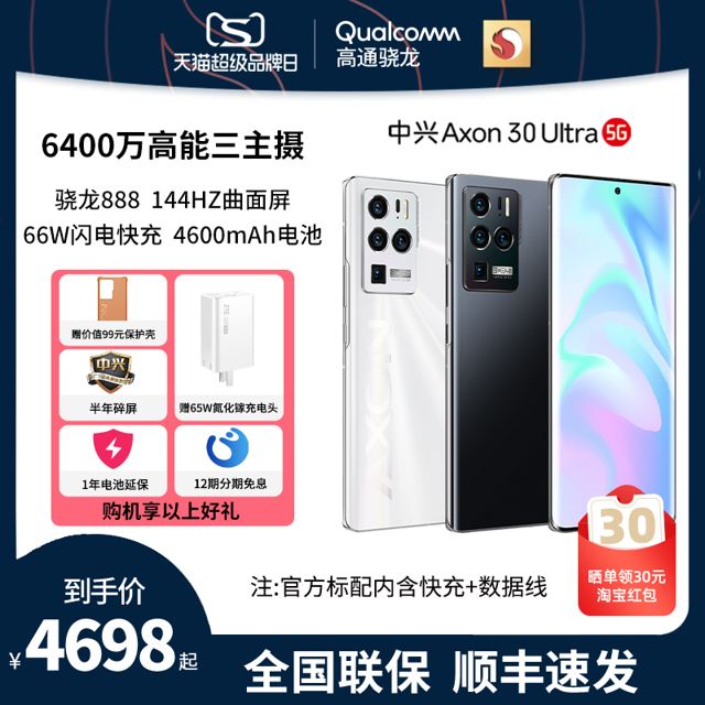 天猫ZTE中兴官方旗舰店目前售价4698元,领取满1000元减10元优惠券,到手价4688元包邮,6400万三主摄,66W快充,感兴趣的买买可以关注一下。