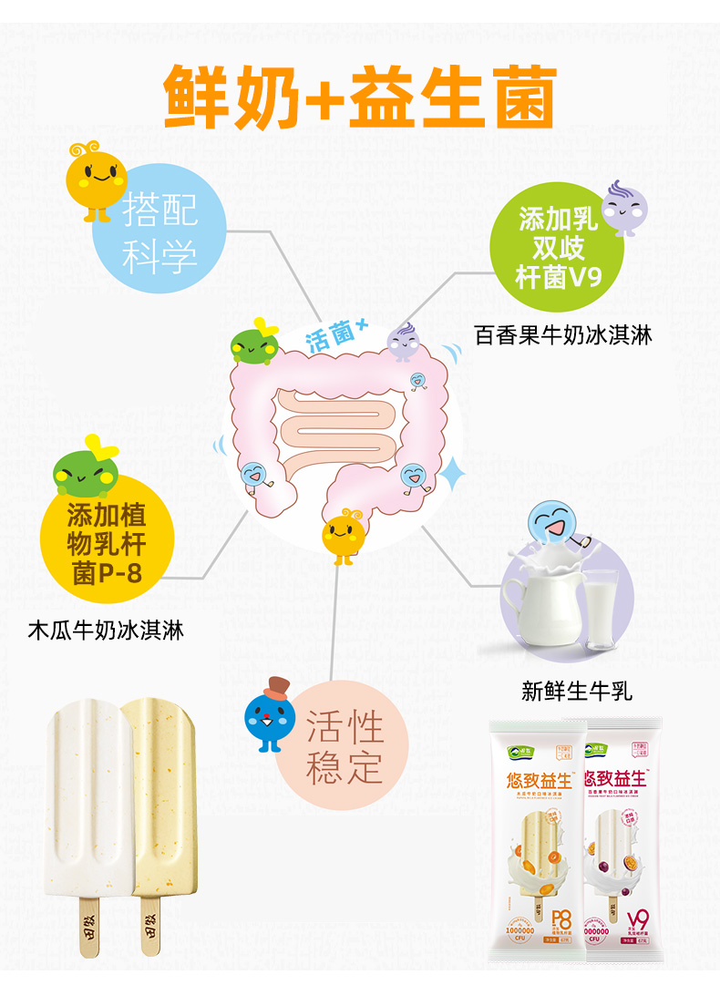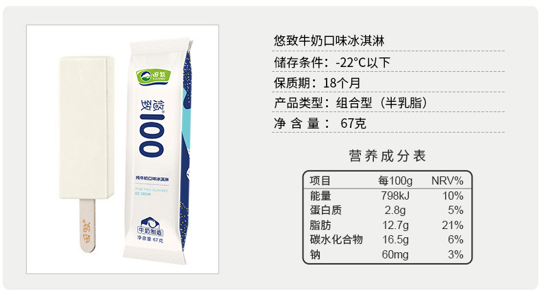 这款田牧 益生菌鲜牛乳冰淇淋,属于悠致益生系列,不加一滴水,生牛乳添加量不低于80%,无色素无防腐剂。口感细腻爽滑,口味浓醇鲜香,入口绵滑。