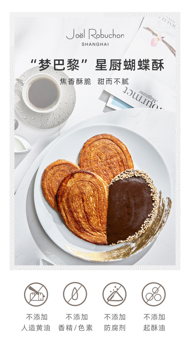 天猫乔尔卢布松美食坊旗舰店108元,可领20元优惠券,实付88元到手; 坐落于魔都外滩十八号的米其林认证 乔尔卢布松餐厅出品甜品,网红千层蝴蝶酥,门店都是每日限量供应,去晚了不是售罄就是排队。这款星厨蝴蝶酥礼盒装220g,用料考究,焦香酥脆,甜而不腻,米其林星级主厨亲研。官店出品,顺丰包邮。