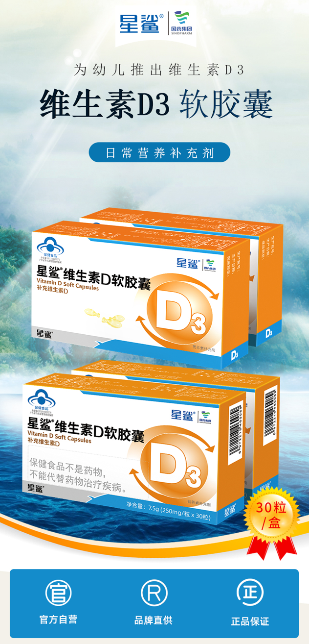 国控星鲨专为幼儿新推出维生素D3营养补充剂,线下药房40多一盒,无添加抗氧化剂,助力钙吸收,适合一岁以上儿童、青少年、老人、孕妇、乳母等;大人预防骨质疏松,强健骨骼;孩子助力成长、提高免疫力。
