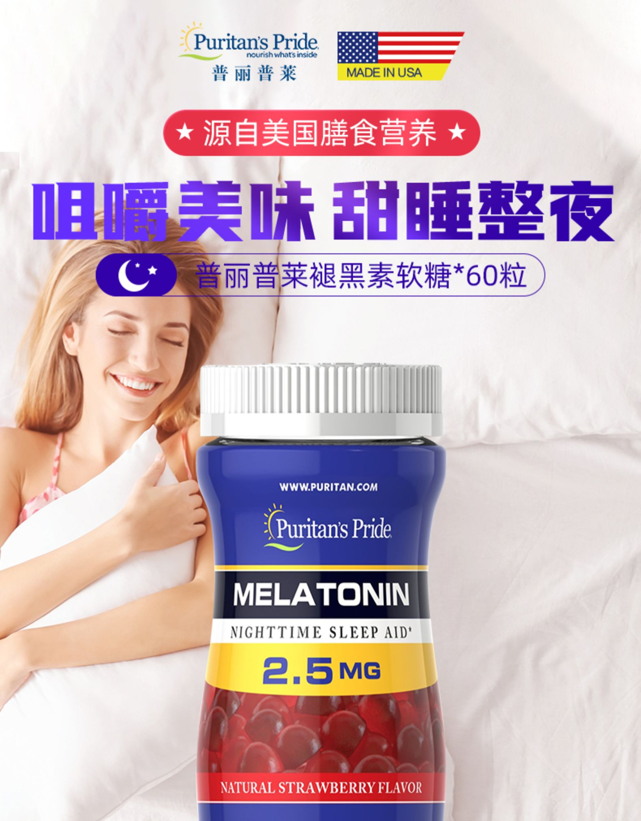 此款软糖获得2018年度睡眠健康产品奖,口感和QQ糖,规格:60粒/瓶。临睡前1粒,1瓶为两个月用量。类似酸甜草莓味,果蔬汁调味,安全健康。