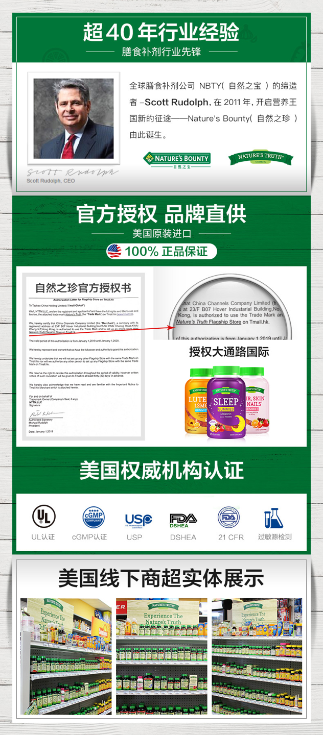 自然之珍与自然之宝同出一源,均是美国NBTY集团旗下的公司,而NBTY是目前全球最大的膳食补充剂生产和销售公司,并获有美国权威的HACCP、GMP等认证,其生产的保健品多从天然生物提炼而非化学合成。