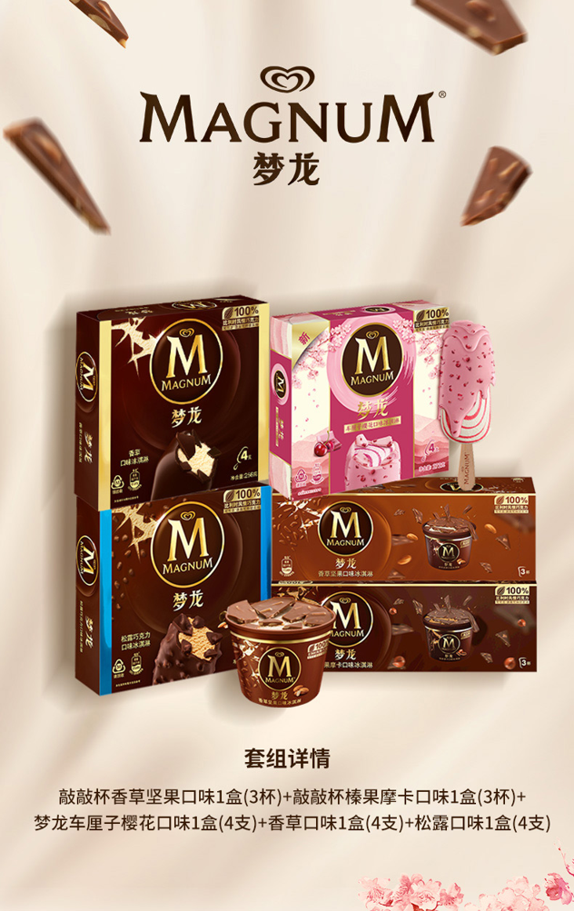 =149元 到手价(定金20+尾款129),套装包含香草坚果和榛果摩卡敲敲杯各3杯,车厘子樱花、香草、松露口味冰淇淋各4支,一次购买,享受全家福口味,尾款叠加200-30元跨店满减可做到更低。