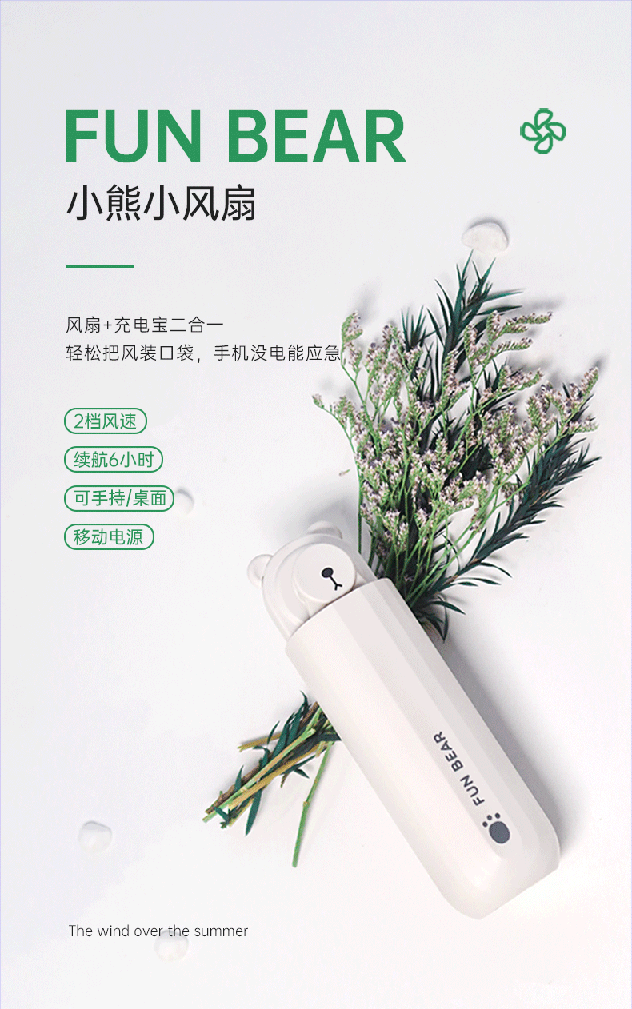昕科产品曾荣获中国红星设计奖、德国IF设计奖等多项国际大奖,这款风扇+充电宝二合一,无刷电机,低噪静音;扇叶硅胶材质,触碰自动停转;两档风速可调,内置2000mAh电池,续航6小时,电状态,能把一部iphone8从0%充到100%。