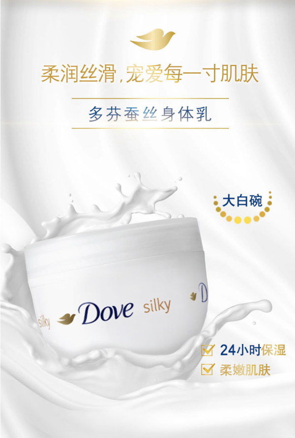 滋润型身体乳霜,1/4乳霜毫微胶囊分子可快速输送于皮肤直达角质层,好吸收不油腻,还特别添加了维生素E和多种润肤精华,双重修护效果,温和滋润全身,24小时持久保湿,全时呵护,美白肌肤,改善肌肤粗糙暗沉,涂抹后全身散发淡雅清香。一瓶才二十多!便宜又大碗!每天抹起来都不会心疼~