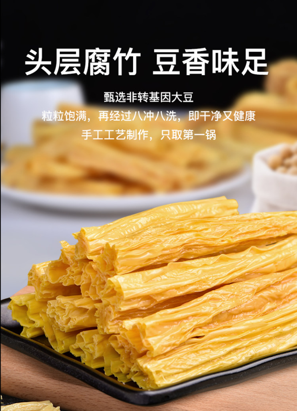 天猫和道家旗舰店13.8元,下单立减3元,可领3元优惠券,实付7.8元到手,纯手工腐竹,非转基因黄豆,内外通透柔软,不硬芯,口感软而劲道,蛋白质含量高达百分之40,吃一顿腐竹=喝30天豆浆,炒菜、清蒸、油炸、凉拌都好吃!领券链接点此
