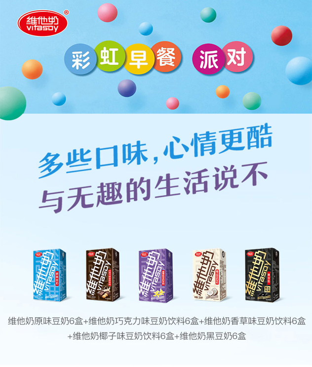 原味+巧克力+香草+椰子+黒豆 多口味豆奶组合装,优质植物蛋白易于消化吸收,低脂肪,0胆固醇,浓香清甜,全家都爱喝~
