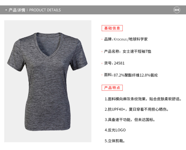 这款地球科学家的T恤,立体剪裁,男微修身,女修身,采用速干透气面料—87.2%聚酯纤维+12.8%氨纶弹性纤维,经过吸收、扩散、蒸发,快速排汗,保持身体清爽;